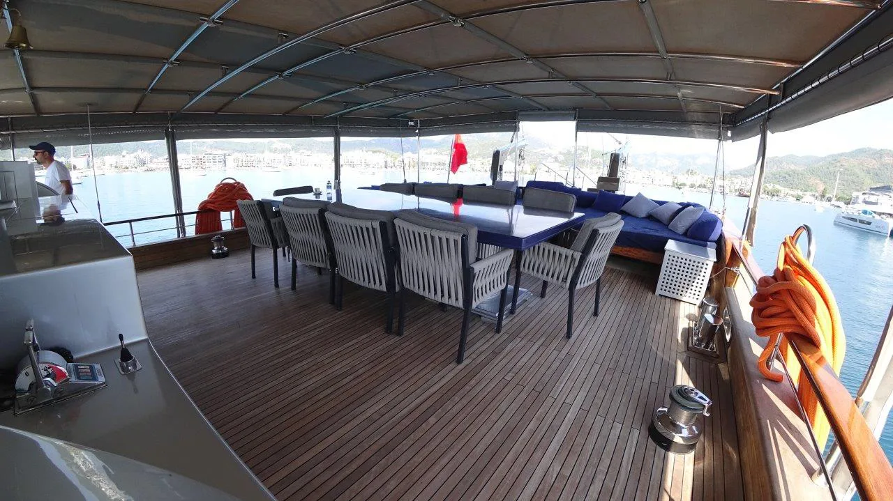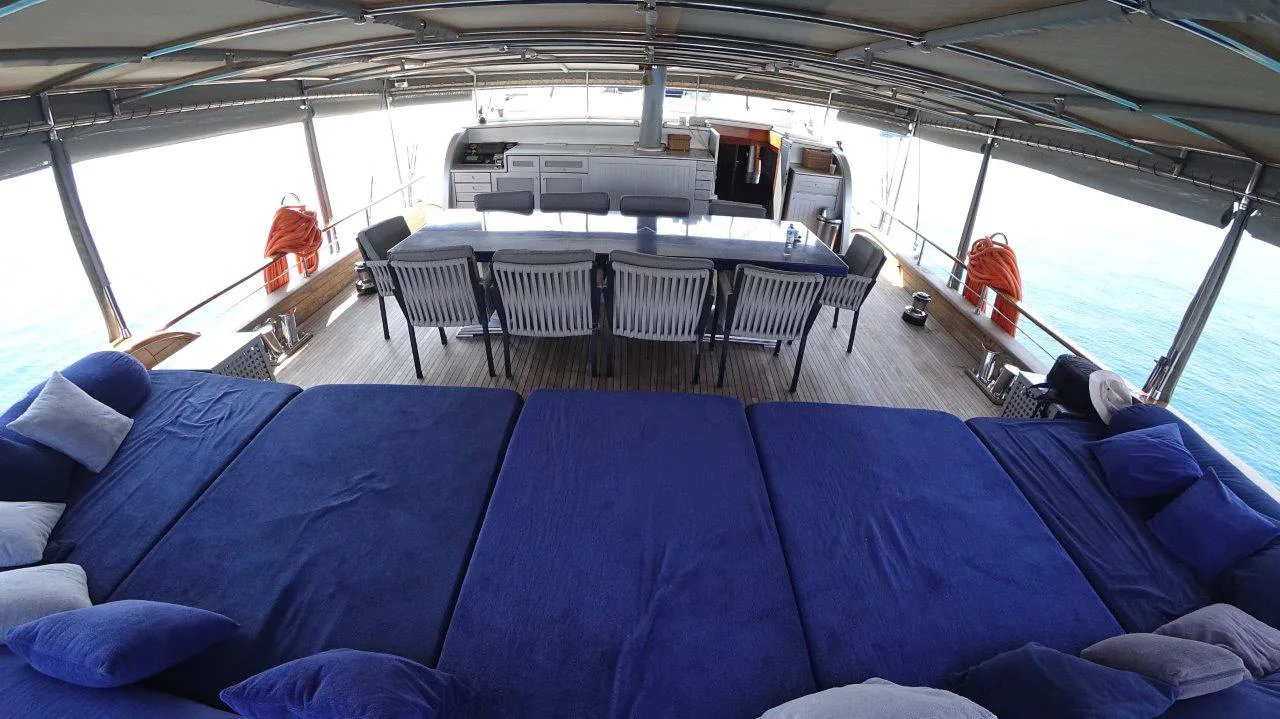 Varato a Bodrum nel 2006, Dream A dispone di 5 ampie cabine en suite – due master, due matrimoniali e una doppia con letti separati – tutte dotate di aria condizionata e bagno privato con box doccia. Gli spazi esterni sono pensati per ogni esigenza: a poppa un’accogliente area ombreggiata con tavolo e divani, sul ponte due livelli calpestabili con zone solarium, e a prua comode sedute per chi ama vivere il mare sotto il sole.