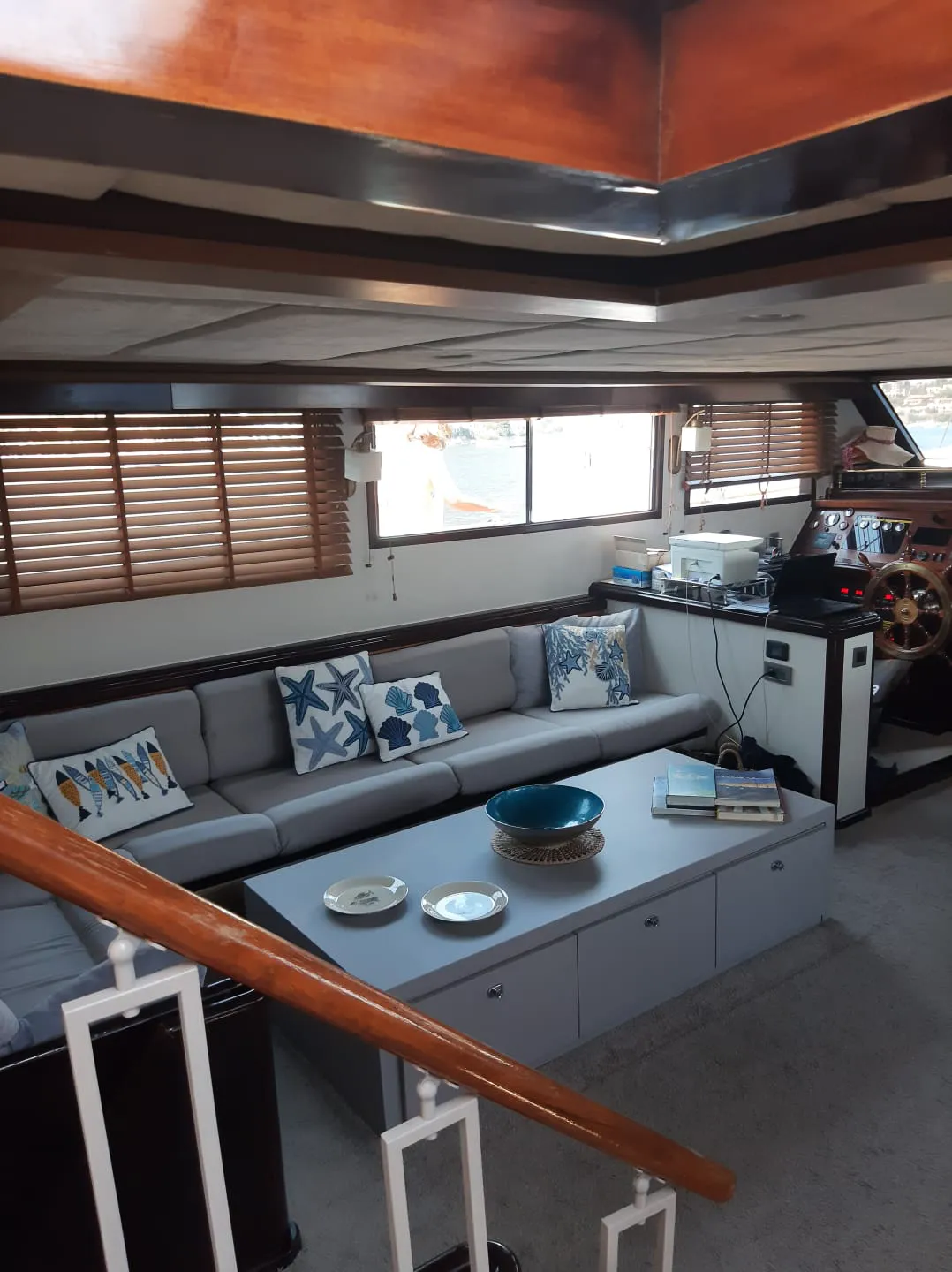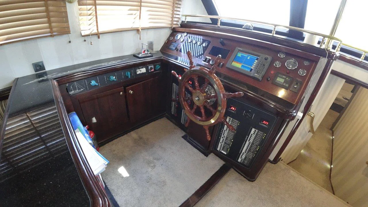 Strumentazione: Bussola, VHF, GPS plotter, Radar, ecoscandaglio con visualizzatore del fondo, windex, log, pilota automatico, generatore, elica di prua, acqua calda e fredda.